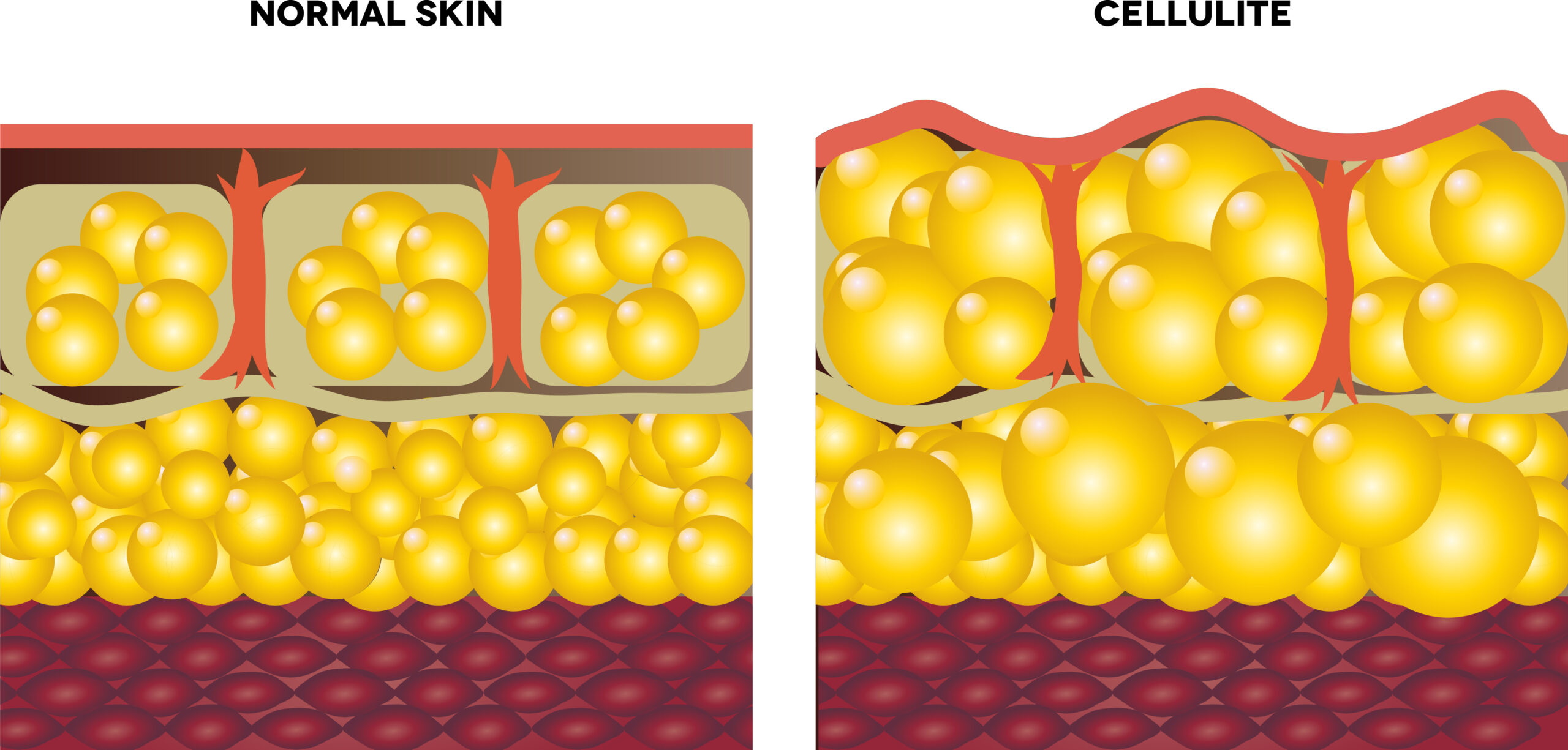 Up until recently, fat and fat alone was labelled the culprit in those cellulite-shaming pics we were endlessly treated to in the press. However, it is now more generally accepted that cellulite is the result of an accumulation of excess fluid and toxins that act to distort the fat cells and connective tissue that surrounds them.